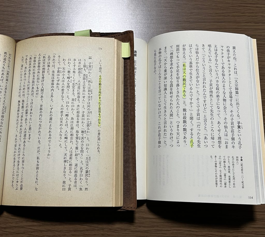 曰く、外編と雑編派読まなくても良い。私も総感じていたので、我が意を得たり!とおもいつつ、さらに進むと大宗師編に、孔子のキャラをあてがわれた登場人物に「私は天の戮民である」と言わせているとのこと。そんな言葉知らなかったし、荘子は高校の頃から読んでいるものの全部を読み通したわけではなく、大宗師編も途中で止まっていたため、はっとして、そういう箇所があったのかと慌ててページをめくりました。